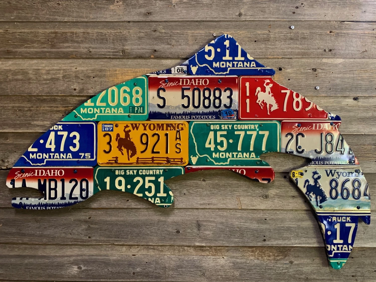 Cody Richardson Art – Large Antique 4-Foot Mixed Western Trout License Plate Art