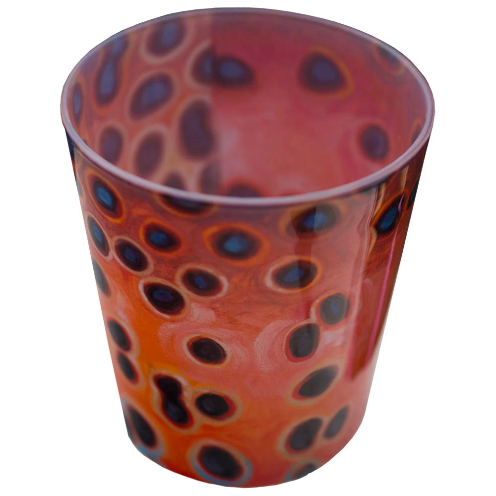 A rocks glass is a short tumbler used for serving a drink like whiskey (on the rocks) or cocktails like the Old Fashioned. These heavy duty rocks glasses showcase the best of Derek’s Abstract Fish Flank Series in a beautiful fully wrapped print within the glass. Great compliment to the Pilsner Glasses. Microwave safe, but not dishwasher recommended. Made in the USA.