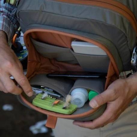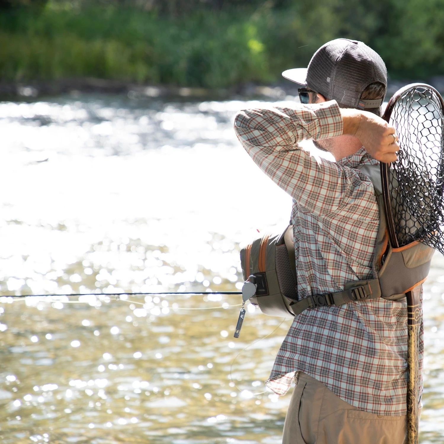 When the fishing is hot there is a lot going on and you have to be able to multitask to keep up with all the activity. The Cross-Current Chest pack is designed to keep all your essentials and boxes organized, keeping them high on your body at the ready. Slide your net out of the integrated net slot, scoop your fish, release it, grab your dry shake out of the magnetic drop down workstation, and get back those moments we all love to celebrate.