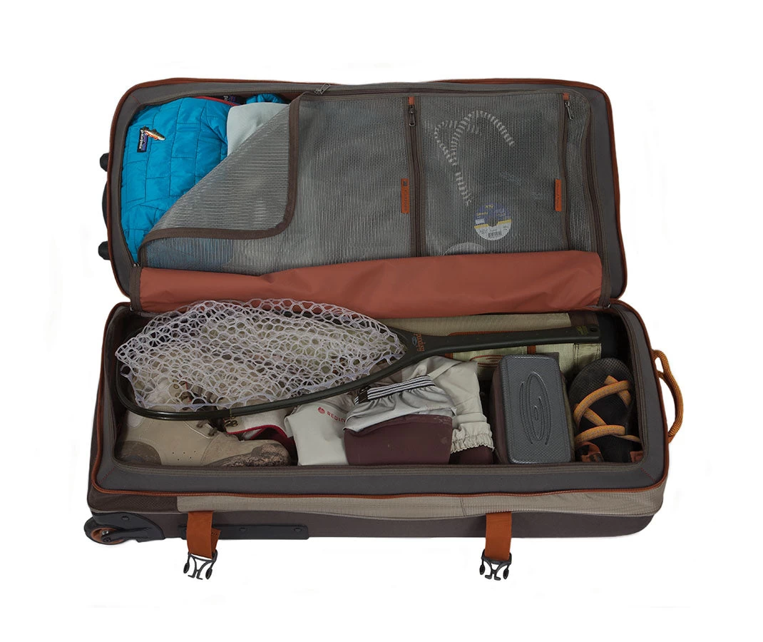 The Grand Tetons may well be the most rugged, iconic, and beautiful peaks in the world. So it only seemed right to identify our new innovative luggage series with this majestic range of mountains. Our quest was to design the most functional, and feature rich luggage system for multi-week adventures to all parts of the world. When you need a travel carry system to hold all of the necessary gear, The Grand Teton will do the job. The separate bottom compartment is designed to securely hold six 4-piece rod tubes. This is in addition to your boots, waders, smaller nets, and much more. The upper main compartment for your clothing and other travel gear can be accessed from the interior clamshell opening for easy packing or from the top of the bag for easier access while traveling. There is just the right amount of organization outside and within, and it all comes to you in a lighter package than ever offered before!