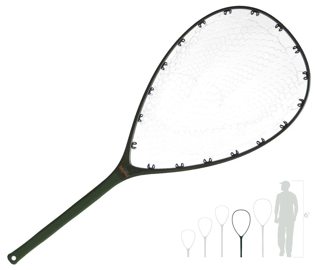 Nomad Nets are constructed with carbon fiber/fiberglass composite material. The result is a very lightweight and durable net. Nomad Nets are built for the conditions that prevail where great fishing exists; they are waterproof, UV protected, and float like a cork. All Nomad Nets come standard with a rubber bag. The now legendary Nomad Net needed a bigger basket for the boaters. Th Nomad Mid-Length Boat delivers it, along with a mid-length handle that makes stowing away a breeze. After you’ve released that catch, of course.