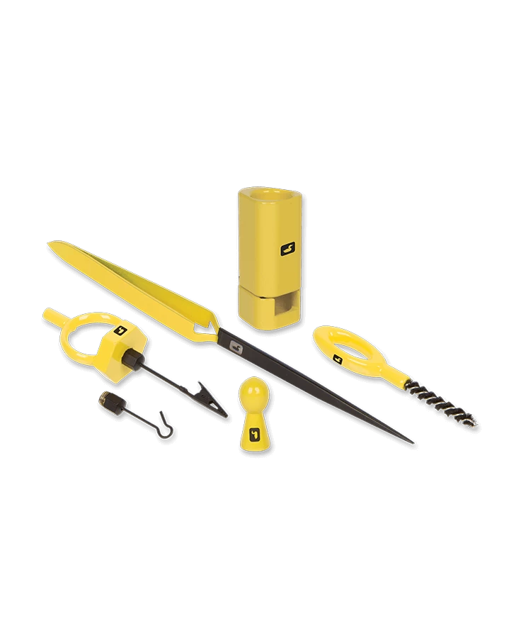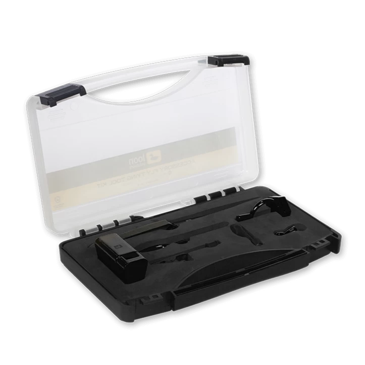Packaged in a heavy duty travel case and featuring the Gator Grip Dubbing Spinner, D-Loop Tweezers, Ergo Dubbing Brush, Zippy Hair Stacker (M) and a Vise Pawn, this is kit for anyone looking to beef up their arsenal of fly tying tools.