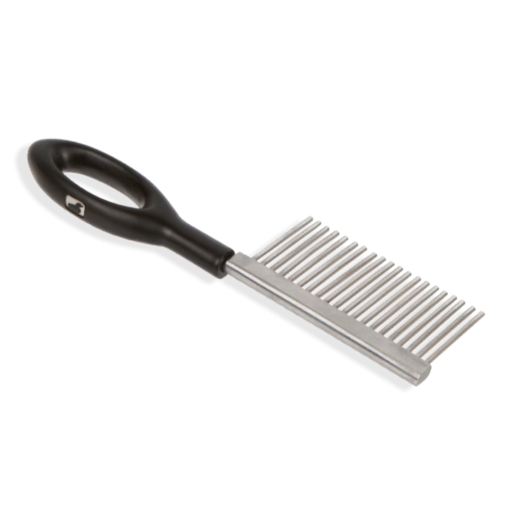 The solution to unruly materials at the vise or mangled streamers on the water. The ergonomic powder coated tool is easy find and comfortable in hand, and the stainless steel shaft and teeth make quick work of messy flies at the bench or on the water