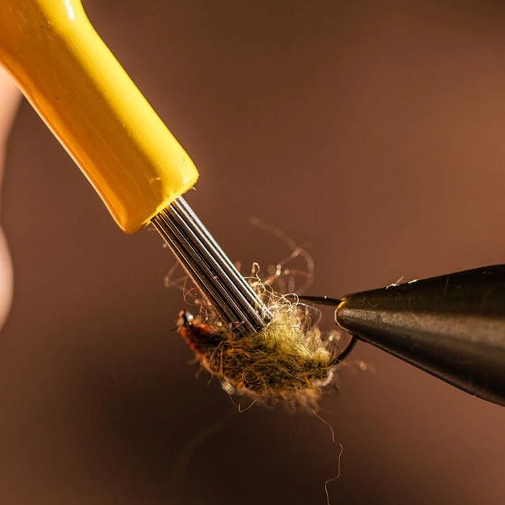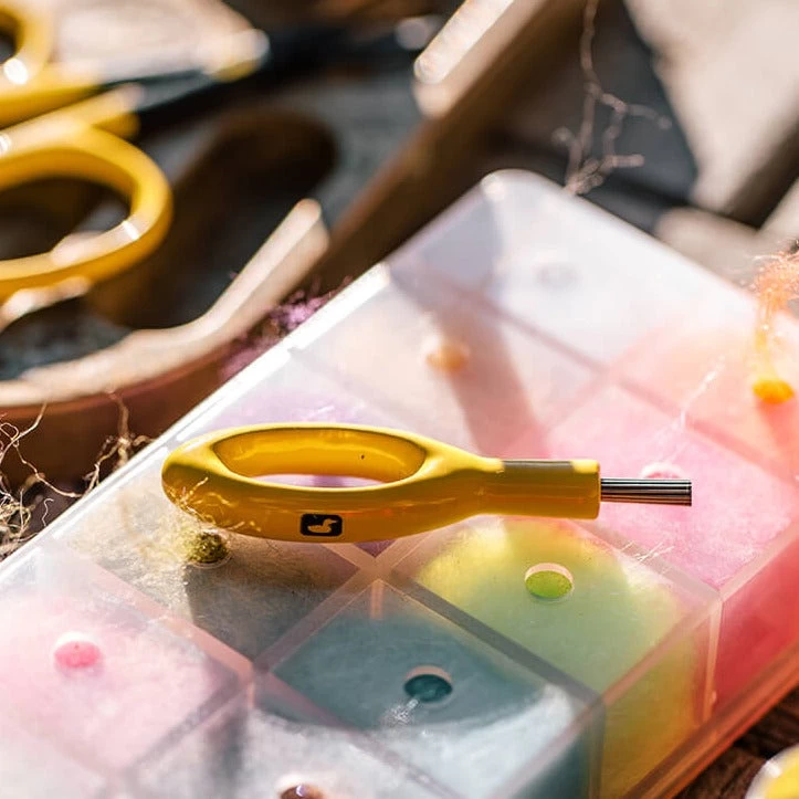 Some flies get better the longer they are fished. The Ergo Dubbing Pick pulls up trapped fibers to get flies up to speed right away. The ergonomic handle is powder-coated in iconic Loon yellow so it won’t get lost on your tying bench.