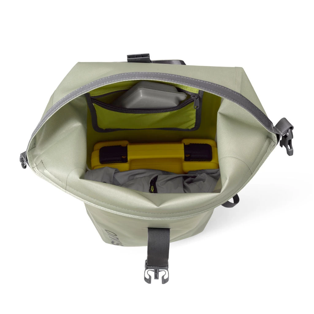 Our PRO Waterproof Roll Top Backpack 20L is constructed from 840-denier, abrasion- and puncture-resistant ballistic nylon, and then coated with .1mm TPU on both sides of the fabric. If there’s a more waterproof and more thoroughly seam-sealed pack collection on the planet, we’ve yet to see it. Twenty liters of storage give you ample protected space in this Roll Top for fishing gear, a jacket, and a PB&J sando or three, now in a stripped-down version that does away with all unnecessary weight for those who require waterproof storage on the move. Gear stays bone dry and access is easy thanks to a generous opening with an interior we’ve brightened up by adding a high-vis chartreuse color. A three-way top closure gives you compression options and allows you to scale the pack up or down based on the volume of gear inside. Minimalists and those who fish from small inflatables, this Roll Top is your daily driver, made even lighter with the addition of accessory docking zones on the breathable mesh shoulder straps that fit comfortably without soaking up water and weight.