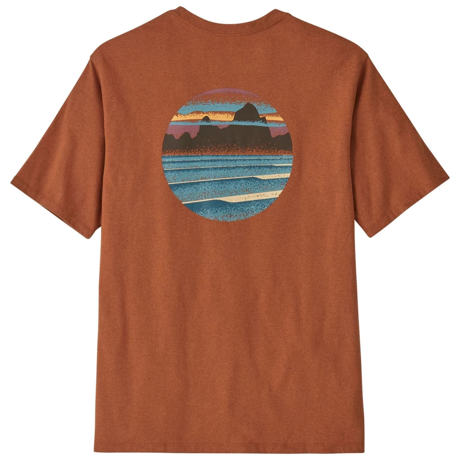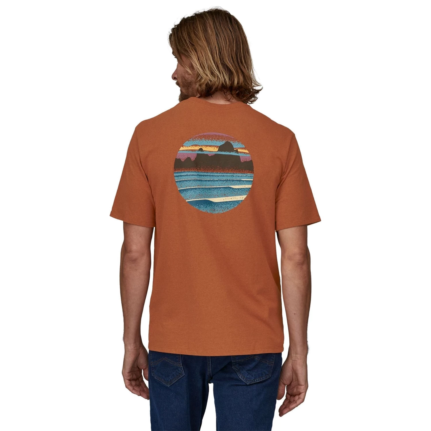 Imagine the Fitz Roy skyline at sunset with stacked sets marching in: The Skyline Stencil graphic is screen-printed on a tee made of 100% postconsumer recycled fabric. By utilizing fabric scraps and recycled bottles, we reduce our reliance on virgin raw materials. Fair Trade Certified™ sewn.