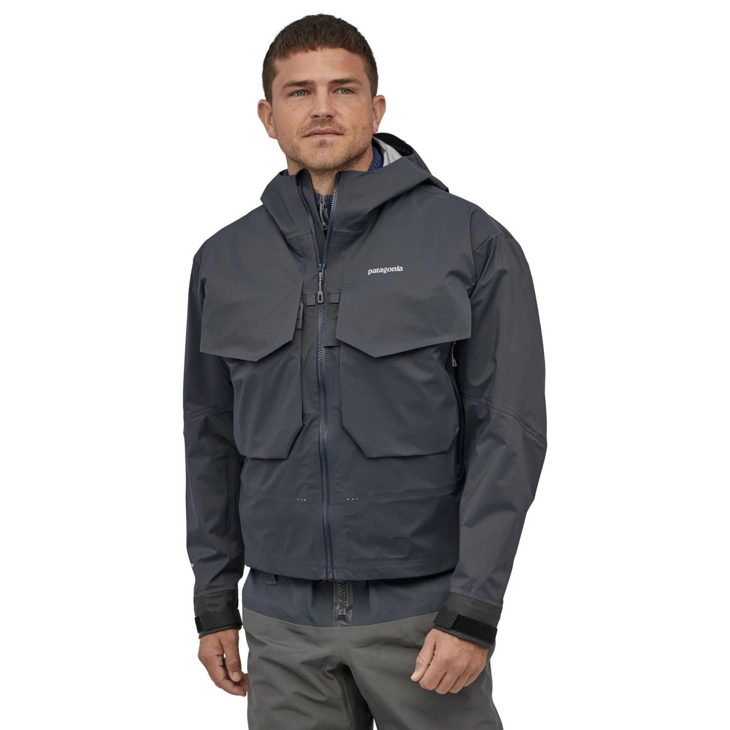 The iconic SST Jacket features bellowed, stay-flat chest pockets, a large back stash pocket, an integrated hood with single-pull adjustment and Reverse StretchCoat cuffs to keep arms dry. The SST is high cut for deep wading and offers double belt loops. Fair Trade Certified™ sewn.