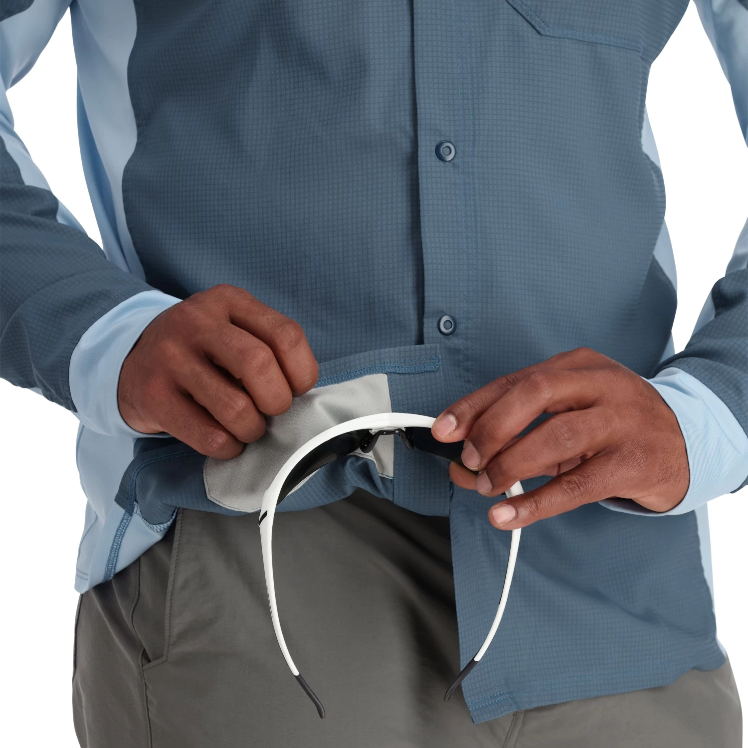 - Zippered left-chest pocket for on-water essentials and convenient sunglasses chamois