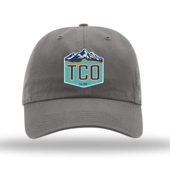 TCO Crest logo on a Richardson “dad hat” in a heavyweight chino twill and an adjustable strapback backstrap. Super comfortable and long lasting hat.