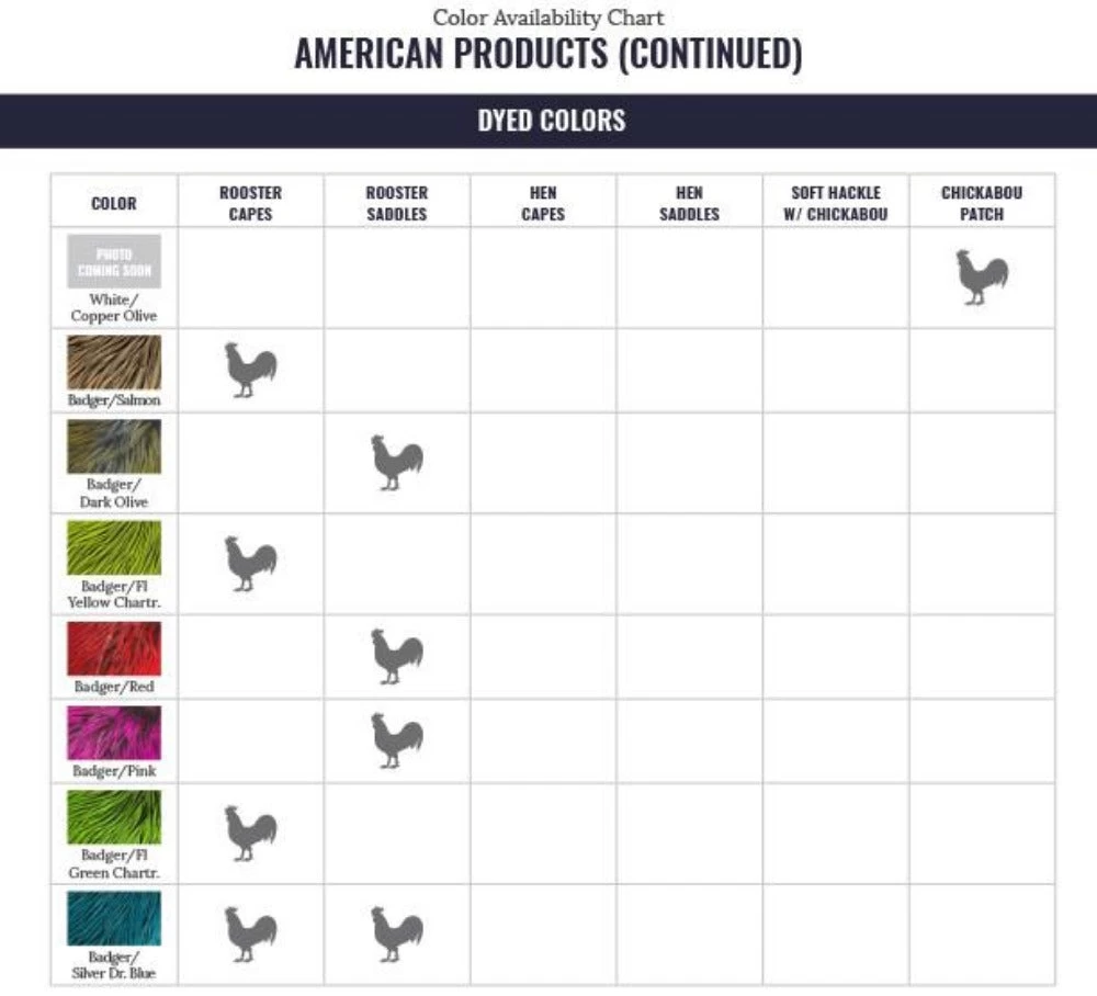 Large cape feathers and extra-long saddle feathers make this the most sought after feather for saltwater, warm water, and wet fly patterns.